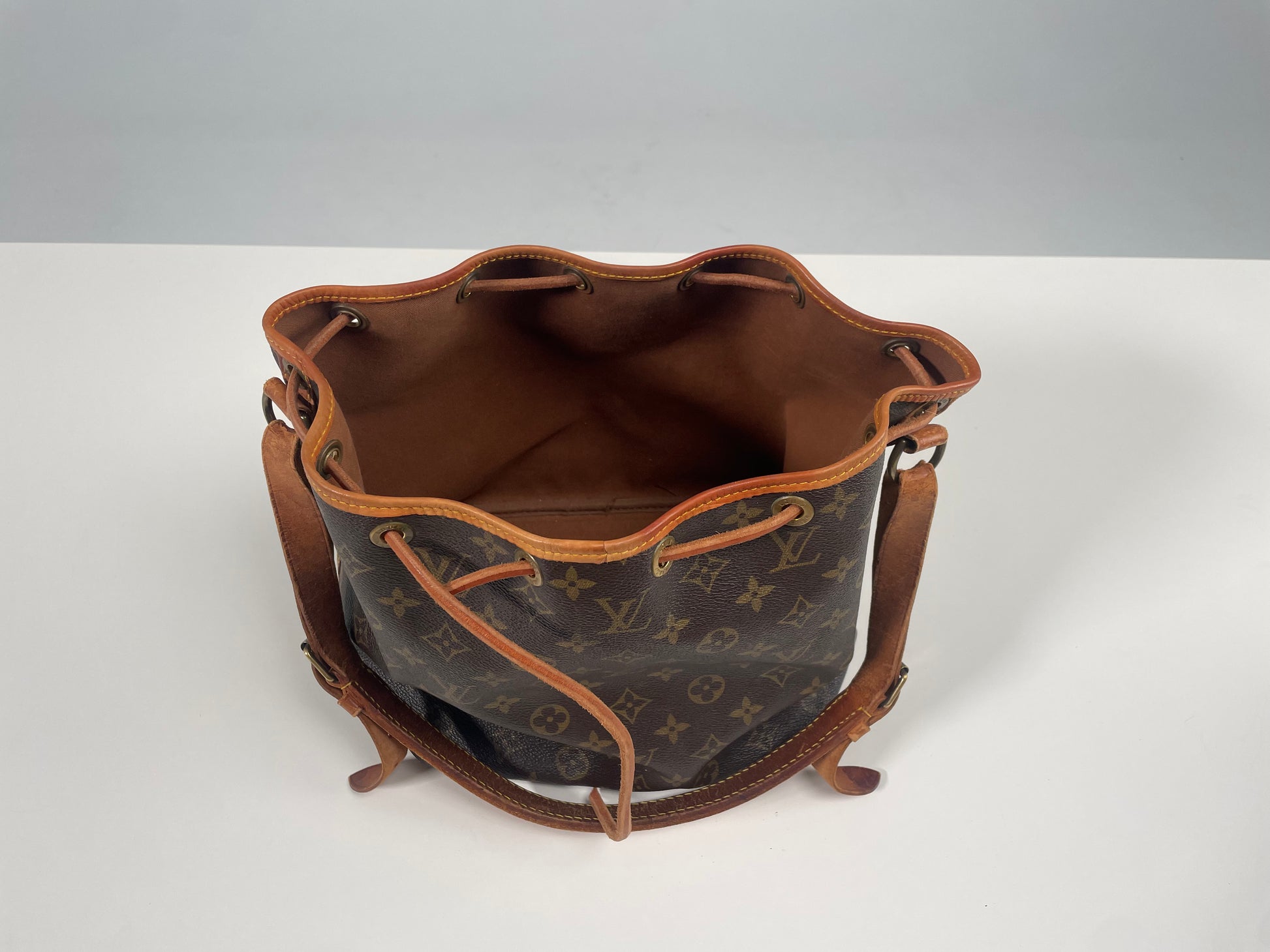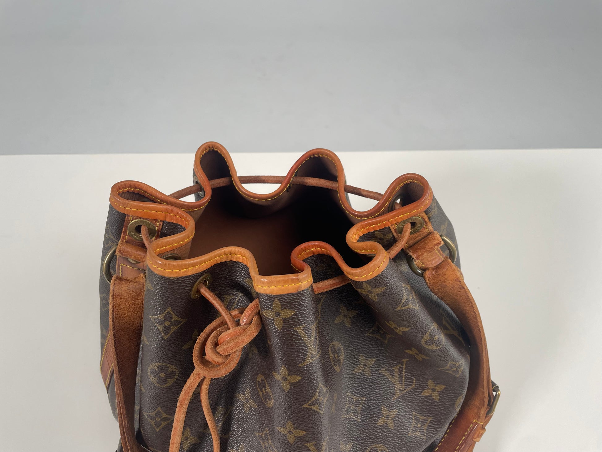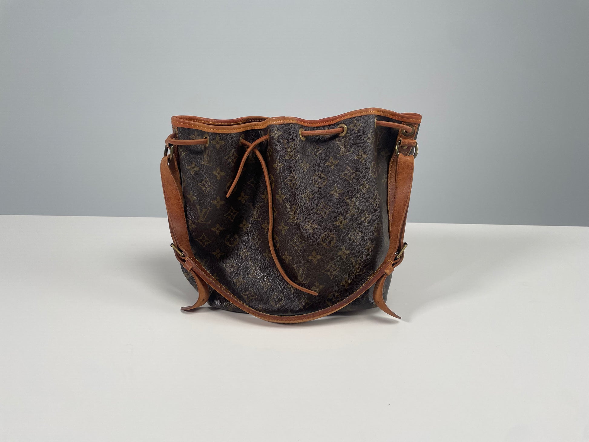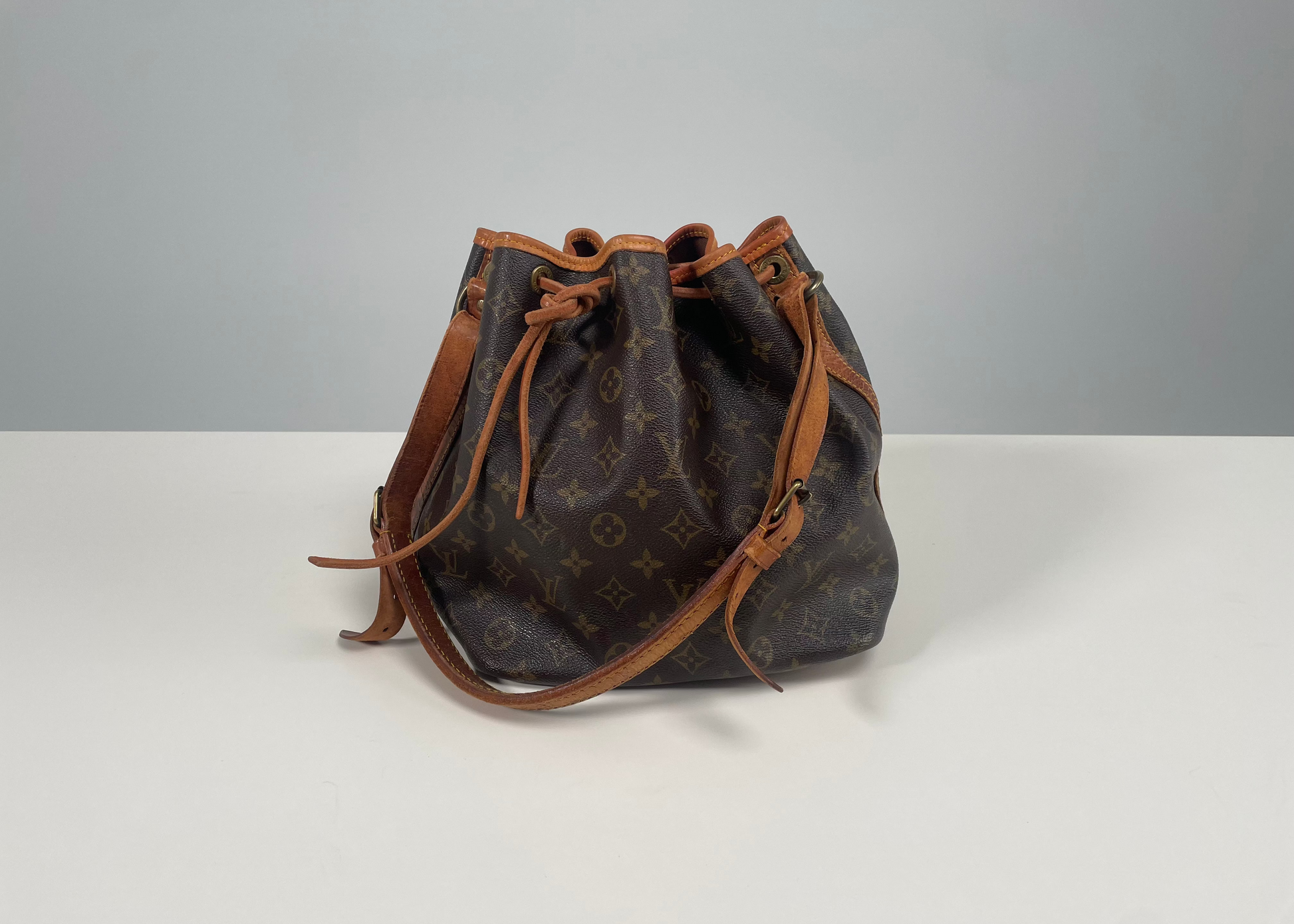 This Louis Vuitton Petit Noé is a monogram bag with golden hardware. The condition of the bag is 'very good' with a few signs of wear. The dimensions are 27 x 25 x 20.